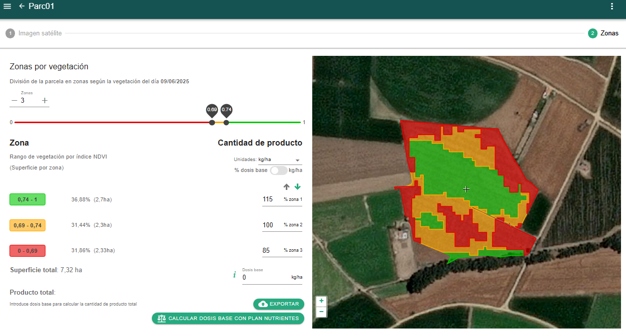 Entre sus funcionalidades vinculadas a la teledetección, destaca el seguimiento de parcelas mediante imágenes de satélite Sentinel-2 del programa Copernicus, que permite analizar la evolución espacial y temporal de los cultivos, evaluar su crecimiento y senescencia, detectar anomalías que afectan a la totalidad de la parcela o a zonas concretas, e identificar zonas singulares o rodales dentro de una misma parcela. Estas capacidades facilitan la realización de comparativas espaciales entre parcelas de la propia explotación o de otras explotaciones, contribuyendo a la identificación de buenas prácticas agronómicas.
